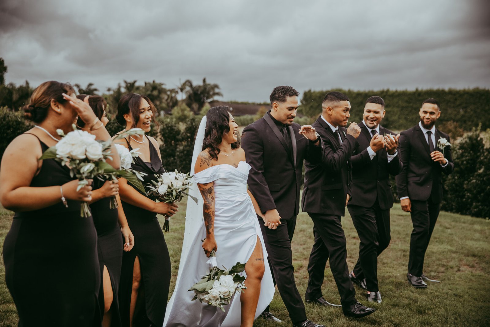 What an unforgettable weekend, thanks to Cyclone Gabrielle! 🌧️💨 Despite the wild weather, nothing could dampen the love and joy that surrounded Bee and Damian on their special day. We embraced the storm and let it add a unique, cinematic touch to their wedding story.